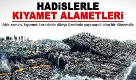 Ahir zaman, kıyamet öncesinde dünya üzerinde yaşanacak olan bir dönemdir. Hz. Muhammed (ASM)'ın, ahir zamanda gerçekleşecek olan olaylarla ilgili pek çok haberi bize ulaşmıştır.![]() Bu olayların, içinde bulunduğumuz dönemde birer birer gerçekleşiyor olması Hz. Muhammed (ASM)'ın mucizelerinden biridir. Hz. Muhammed (ASM) kendi yaşadığı dönemden 1400 yıl sonrasında meydana gelecek olayları, sanki o dönemi izlemiş gibi detaylı olarak anlatmıştır. Hz. Muhammed (ASM)'ın hadislerinde bildirilen çok sayıda ahir zaman ve kıyamet alametlerinden şunları sayabiliriz: Hz. Enes (radıyallahu anh) anlatıyor: "Resulullah (aleyhissalatu vesselam) buyurdular ki: "Zaman yakınlaşmadıkça kıyamet kopmaz. Bu yakınlaşma öyle olur ki, bir yıl bir ay gibi, ay bir hafta gibi, hafta da bir gün gibi, gün saat gibi, saat de bir çıra tutuşması gibi (kısa) olur." (Tirmizi, Zühd 24) Hz. Enes (radıyallahu anh) anlatıyor: "Resulullah (aleyhissalatu vesselam) buyurdular ki: "Kıyamet Allah Allah diyen bir kimsenin üzerine kopmayacaktır." (Müslim, İman 234, Tirmizi, Fiten 35) Hadisin bir başka veçhinde: "Yeryüzünde Allah Allah diyen kaldıkça kıyamet kopmaz." buyrulmuştur. Hz. Huzeyfe (radıyallahu anh) anlatıyor: "Resulullah (aleyhissalatu vesselam) buyurdular ki: "İnsanların dünyaca en bahtiyarını adi oğlu adiler teşkil etmedikçe kıyamet kopmaz." (Tirmizi, Fiten 37) Ebu Said (radıyallahu anh) anlatıyor: "Resulullah (aleyhissalatu vesselam) buyurdular ki: "Ruhumu kudret elinde tutan Zat-ı Zülcelal'e yemin olsun ki, vahşi hayvanlar insanlarla konuşmadıkça, kişiye kamçısının ucundaki meşin, ayakkabısının bağı konuşmadıkça, kendisinden sonra ehlinin ne yaptığını dizi haber vermedikçe kıyamet kopmaz." (Tirmizi, Fiten 19) Hz. Ebu Hureyre (radıyallahu anh) anlatıyor: "Resulullah (aleyhissalatu vesselam) buyurdular ki: "Güneş, battığı yerden doğmadıkça kıyamet kopmaz. Batıdan doğunca, insanlar görür ve hepsi de iman eder. Ancak, daha önce inanmamış veya imanın sevkiyle hayır kazanamamış olan hiç kimseye bu iman fayda sağlamaz." (Buhari, Rikak 39, İstiska 27, Zekat 9; Müslim, İman 248, Ebu Davud, Melahim 12.) Ebu Hureyre (radıyallahu anh) anlatıyor: "Resulullah (aleyhissalatu vesselam) buyurdular ki: "Otuz kadar yalancı deccaller çıkmadıkça kıyamet kopmaz. Bunlardan her biri Allah'ın elçisi olduğunu zanneder." (Tirmizi, Fiten 43, Ebu Davud, Melahim 16) Hz. Enes (radıyallahu anh) anlatıyor: "Resulullah (aleyhissalatu vesselam) buyurdular ki: "Kıyamet kopmazdan önce gece karanlığının parçaları gibi fitneler olacak. (O vakit) kişi mü'min olarak sabaha erer de kafir olarak akşama kavuşur. Mü'min olarak akşama erer, kafir olarak sabaha kavuşur. Birçok kimseler azıcık bir dünyalık mukabilinde dinlerini satarlar." (Tirmizi, Fiten 30) Hz. Huzeyfe (radıyallahu anh) anlatıyor: "Resulullah (aleyhissalatu vesselam) buyurdular ki: "Nefsim yed-i kudretinde olan Zat-ı Zülcelal'e yemin olsun! İmamınızı öldürmedikçe, kılıçlarınızı birbirinize kullanmadıkça, dünyanıza şerirleriniz varis olmadıkça kıyamet kopmaz." (Tirmizi, Fiten 9.) "Müslümanlardan iki grup aralarında savaşmadıkça kıyamet kopmaz. Bunlar aralarında büyük bir savaş yaparlar, fakat davaları birdir." (Buhari, Fiten 24, Menakıb 25, İstitabe 8; Müslim, İman 248, Fiten 17) Hz. Ebu Hureyre (radıyallahu anh) anlatıyor: "Resulullah (aleyhissalatu vesselam) buyurdular ki: "Devs kabilesinin kadınlarının kıçları, Zü'lhalasa putunun etrafında titremedikçe kıyamet kopmaz. Zü'lhalasa, Devslilerin cahiliye devrinde tapındıkları [Tebale'deki] puttur." (Buhari, Fiten 23; Müslim, Fiten 51) Ebu Hureyre (radıyallahu anh) anlatıyor: "Resulullah (aleyhissalatu vesselam) buyurdular ki: "Bunun üzerine, çıkarlar. Ancak bu haber batıldır. Şam'a geldiklerinde (Deccal) çıkar. Bunlar savaş için hazırlık yapıp safları tanzim ederken, namaz için ikamet okunur. Derken İsa İbnu Meryem iner ve onlara gitmek ister. Allah'ın düşmanı, Hz. İsa'yı görünce, tıpkı tuzun suda erimesi gibi, erir de erir. Eğer bırakacak olsa, (kendi kendine) helak oluncaya kadar eriyecekti. Ancak Allah onu kudret eliyle öldürür; öyle ki onlara, harbesindeki kanını gösterir." (Müslim, Fiten 34,) "Bizden esir edilenlerle aramızdan çekilin de onları öldürelim!" derler. Müslümanlar da: "Hayır! Vallahi sizinle, kardeşlerimizin arasından çekilmeyiz" derler. Bunun üzerine (Müslümanlar) onlarla harb eder. Bunlardan üçte biri inhizama uğrar. Allah ebediyen bunların tövbesini kabul etmez. Üçte biri katledilir, bunlar Allah indinde şehitlerin en faziletlileridir. Üçte biri de muzaffer olur. Bunlar ebediyen fitneye düşmezler. Bunlar İstanbul'u da fethederler. (Fetihten sonra) bunlar, kılıçlarını zeytin ağacına asmış ganimet taksim ederken, şeytan aralarında şöyle bir nida atar: "Mesih Deccal, ailelerinizde sizin yerinizi aldı!" Ebu Hureyre (radıyallahu anh) anlatıyor: "Resulullah (aleyhissalatu vesselam) buyurdular ki: "Rumlar, A'mak ve Dabık nam mahallere inmedikçek kıyamet kopmaz. Onlara karşı Medine'den bir ordu çıkar. Bunlar o gün arz ehlinin en hayırlılarıdır. Bu ordunun askerleri savaşmak üzere saf saf düzen alınca, Rumlar: "Hicaz bölgesinden bir ateş çıkmadıkça kıyamet kopmaz. Bu ateş Busra'daki develerin boyunlarını aydınlatacaktır." (Buhari, Fiten 24; Müslim, Fiten 42) Ebu Hureyre (radıyallahu anh) anlatıyor: "Resulullah (aleyhissalatu vesselam) buyurdular ki: "Fırat nehri altın bir dağ üzerinden açılmadıkça kıyamet kopmaz. Onun üzerine insanlar savaşırlar. Yüz kişiden doksan dokuzu öldürülür. Onlardan her biri: "Herhalde savaşı ben kazanacağım." der." (Buhari, Fiten 24, Müslim, Fiten 29) Ebu Hureyre'den (radıyallahu anh) nakledildiğine göre: Allah Resulü (a.s.): "Herc vakıaları 