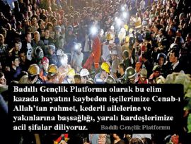 Manisa'nın Soma ilçesinde meydana maden kazasında vefat eden kardeşlerimize Badıllı Gençlik Platformunun taziye mesajı![]() İnna Lillah ve İnna İleyhi Raciun Badıllı Gençlik Platformu olarak bu elim kazada hayatını kaybeden işçilerimize Cenab-ı Allah’tan rahmet, kederli ailelerine ve yakınlarına başsağlığı, yaralı kardeşlerimize acil şifalar diliyoruz. Manisa'nın Soma ilçesinde Eynez bölgesindeki Soma Holding'e ait kömür ocağında, dün saat 15.30'da ilk belirlemelere göre trafo patlaması nedeniyle yangın çıktı. Enerji ve Tabii Kaynaklar Bakanı Taner Yıldız, Soma'da basına yaptığı son açıklamada, patlama esnasında madende 787 işçinin çalıştığını, bu işçilerden 205’inin karbon monoksit zehirlenmesinden hayatını kaybettiğini, 80 işçinin yaralı olduğunu açıkladı. Ülkemizi büyük bir üzüntüye boğan faciadaki bilanço her geçen saat giderek ağırlaşıyor. Yapılan açıklamalara göre, patlamanın eksi 150 kodunda çıktığı, 450 koduna kadar işçilerin çalıştığı belirtilmektedir. Vardiya değişimi sırasında gerçekleşen bu elim felaket kayıplarımızın artmasında etkili olmuştur. Badıllı Gençlik Platformu olarak öncelikle bu elim kazada hayatını kaybeden işçilerimize Cenab-ı Allah’tan rahmet, kederli ailelerine ve yakınlarına başsağlığı, yaralı kardeşlerimize acil şifalar diliyoruz. Bu kazaların bir kader olduğu, bundan kaçınmanın mümkün olmadığını kabul edebilir miyiz? Yaşadığımız durum, birçok iş alanında olduğu gibi maden ocaklarında da yeterli denetimlerin yapılmadığı, işçi sağlığı ve iş güvenliği hususunda gerekli tedbirlerin alınmadığı, iş sahiplerinin daha çok kazanma hırsıyla hareket ederek insan canını ve onurunu hiçe saydığı konusunda ciddi endişelere neden olmaktadır. Yaşadığımız bu elim olay, bu bakımdan artık bir milat olmalıdır. İnsan canını ve onurunu yok sayan her tür gayri insani koşul ortadan kaldırılmalı; iş alanlarımız insan haysiyetine yaraşır biçimde acilen düzenlenmelidir. İş sahiplerinin daha çok kazanma hırsıyla insanları köleleştirmesine fırsat verilmemelidir. Devlet, millet için var olduğunu bir kez daha hatırlamalıdır. Duamız; Cenab-ı Hakk’ın ülkemizi, milletimizi, Ümmet-i Muhammed’i bu tür felaket ve acılardan korumasıdır. BADILLI GENÇLİK PLATFORMU
